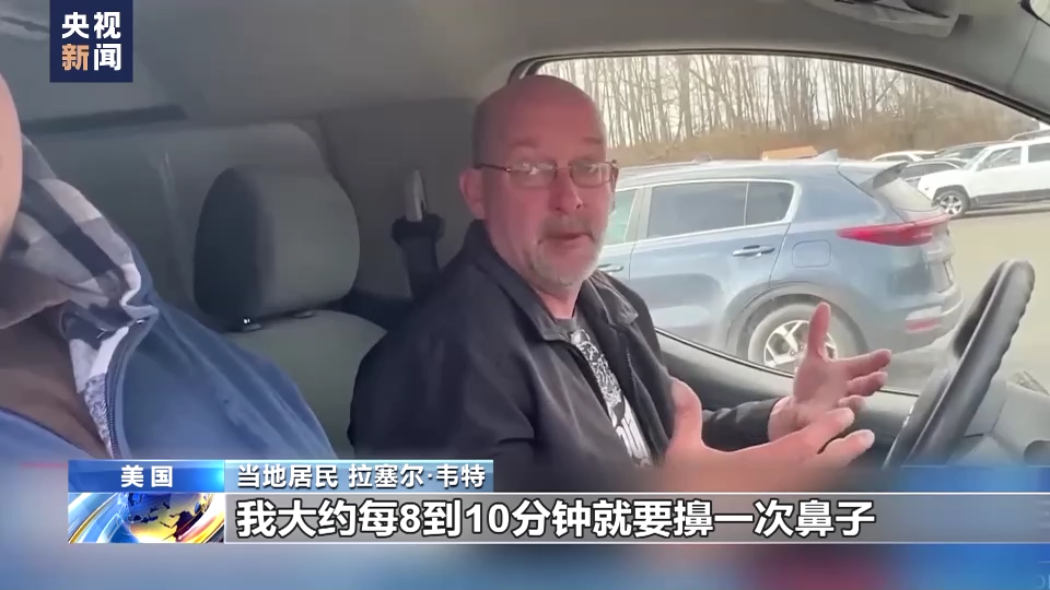 当地居民 拉塞尔·韦特:我感觉眼睛快从脑袋里掉出来了,非常鼓。我大约每8到10分钟就要擤一次鼻子,还会出血。
