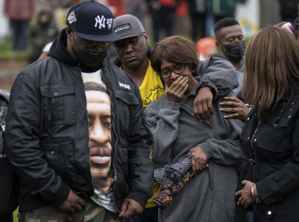 2022年5月25日,在美国明尼苏达州明尼阿波利斯市,弗洛伊德的家人参加哀悼活动,纪念弗洛伊德遇害两周年。新华社发(本·布鲁尔摄)