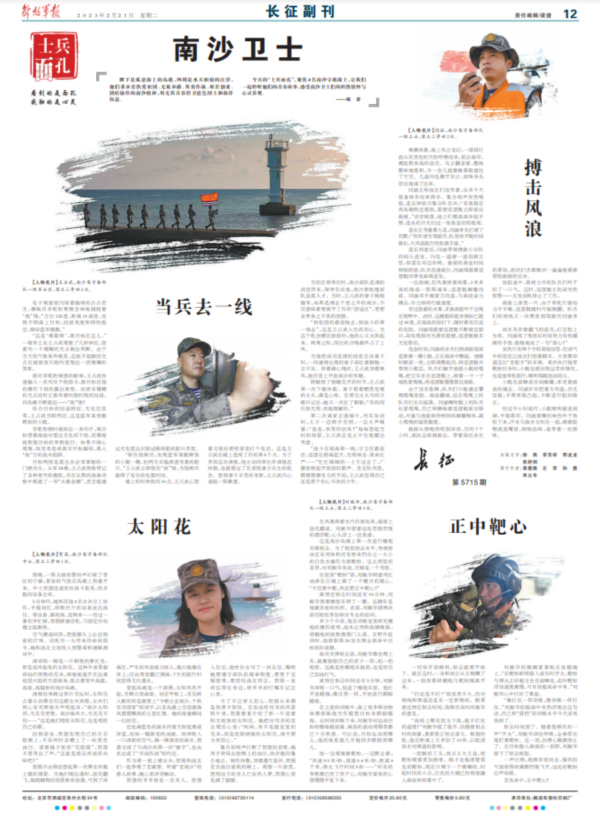 演练结束路过那片花坛时,太阳花点着头仿佛在向这群女兵致敬,女兵们则心有灵犀地齐声唱起来:“南沙太阳烈,无名花更艳。南沙海风大,无名花不怕……”这是她们唱给太阳花,也是唱给自己的歌。