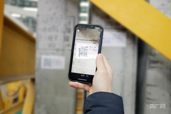 装配式建筑构件的“身份证”,通过扫码可追溯(央广网见习记者 刘培俊 摄)