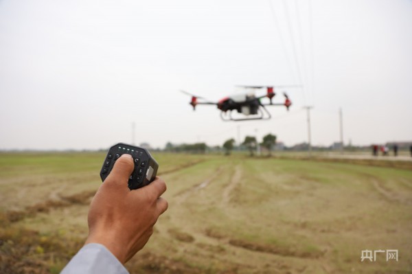技术人员娴熟地操纵无人农机(央广网记者 胡斐 摄)