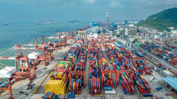 图为粤港澳大湾区首个5G绿色低碳智慧港口——深圳蛇口妈湾港(2023年2月 冯萧 摄 )