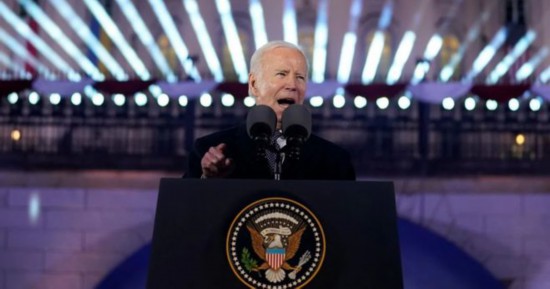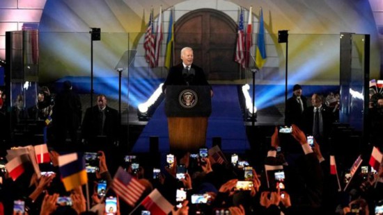 CNN说,在不到一年的时间里,拜登在波兰同一个城堡发表了第二次讲话,他在一群听众面前声称,面对俄罗斯的攻击,西方的决心更加坚定。