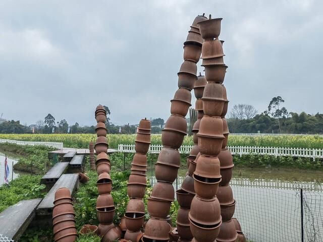 改变从2019年开始,四川美术学院课题小组对莲花穴进行了为期一年的摸底调查。“七塘镇与四川美术学院和重庆市雕塑学会等达成合作,对莲花穴进行艺术活化改造。”七塘镇文化宣传干部佘林川介绍,如今,莲花穴的石砌牛圈被改造成了茶室,土坯猪圈建成了活动室,猪槽内鲜花盛开;艺术专业的学生们用三个巨大树丫做成“众”字形大门立在东头,引得游客纷纷拍照留影。