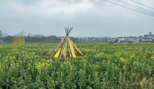 极目远眺,田地里盛开的油菜花尽收眼底,栩栩如生的稻草人、随处可见的艺术品……漫步在村里,犹如走进了一幅生动的乡村画卷。