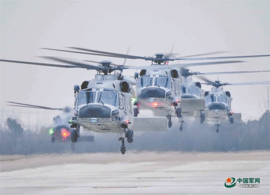 直升机编队升空。