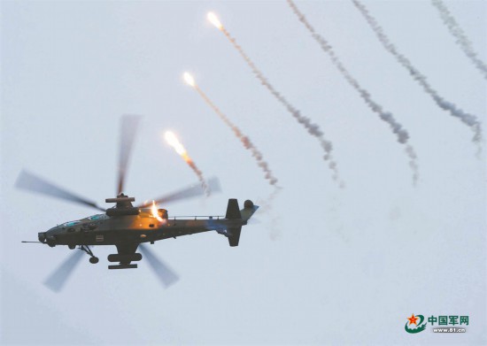 飞抵目标空域后,根据先遣渗透小队标记的目标要点,武装直升机飞行员快速锁定目标。攻击指令下达,飞行员迅速构建攻击航线。跃升、俯冲、攻击……双机编队完成模拟攻击后,随即投放红外干扰弹脱离攻击区域。