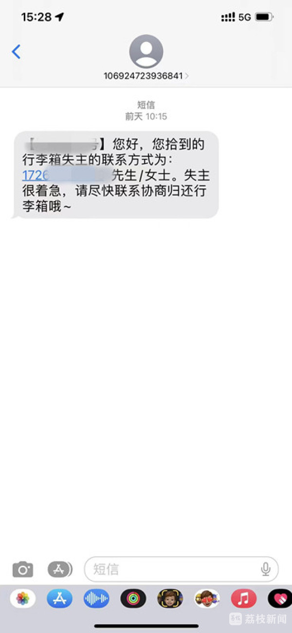 南京特警根据王同学下车的时间地点,调阅监控,但客流量较大,无法辨别是谁拿错了箱子。就在找箱子陷入僵局的时候,细心民警发现了行李箱上的一个小贴纸,贴纸上有一个二维码,旁边写着:“扫码还箱子”。