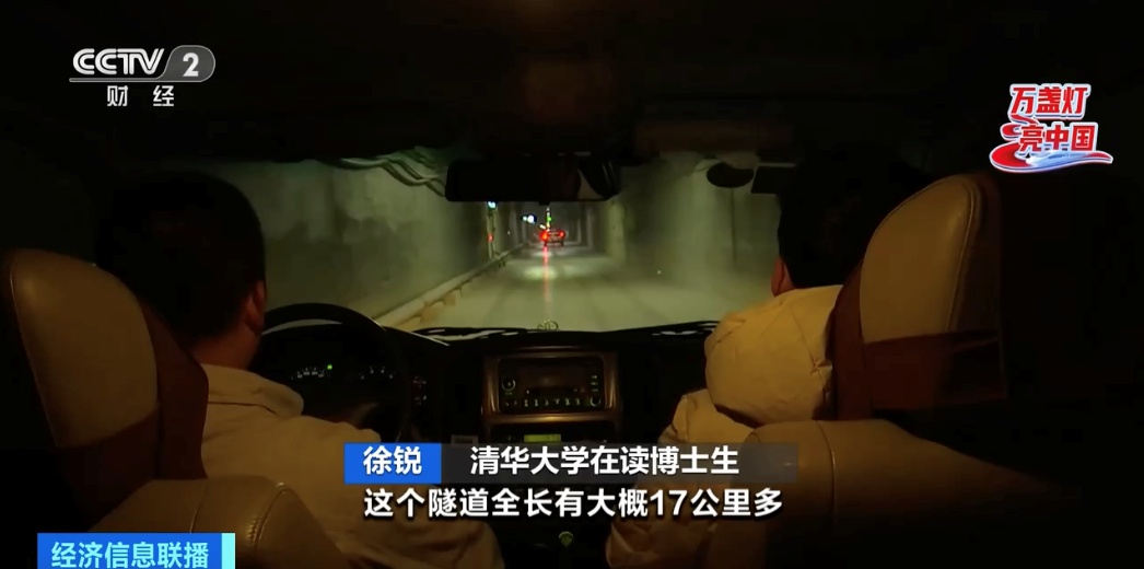 清华大学在读博士生 徐锐:这就是我每天上班要经过的一个隧道,隧道全长大概17公里,里面比较暗,当看到前面有一片灯光的时候,就到实验室了。