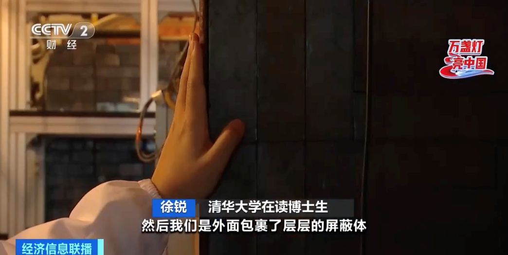 清华大学在读博士生 徐锐:我们实验中最核心的装置,就是暗物质探测器,大概一公斤重的圆柱体,我们在外面包裹了层层的屏蔽体。