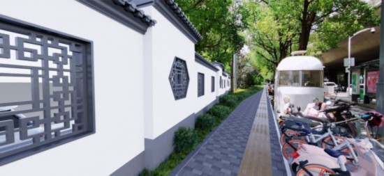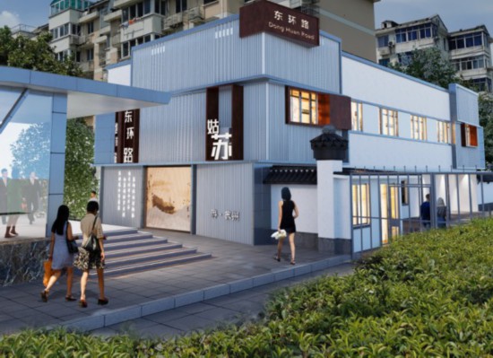 姑苏区东环高架沿线公共空间立面环境提升工程将对东环路西侧高架沿线的公共建筑、围墙、一层沿街商业进行立面整治,并对沿线进行绿化景观和市政工程改造。项目预计共改造重点建筑11栋、沿街商业界面1300米、围墙3000米,并对重点建筑进行灯光亮化。