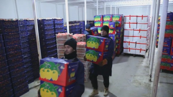 (霍尔果斯金亿国际贸易(集团)有限公司正在装运果蔬商品)