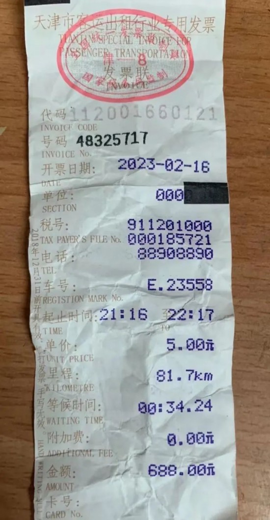 688元的打车票