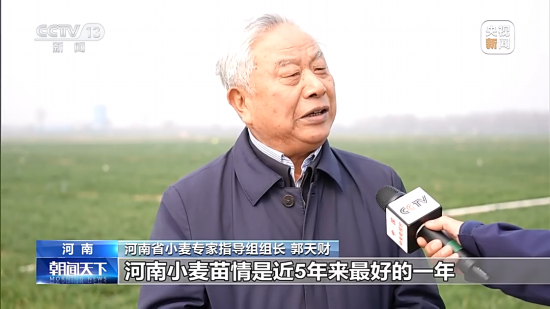 河南省小麦专家指导组组长 郭天财:河南小麦苗情为近5年来表现最好的一年,突出表现是一二类苗占比高,(达)89.4%。而且各类苗情,不论是群体长势,还是个体指标都明显好于往年。