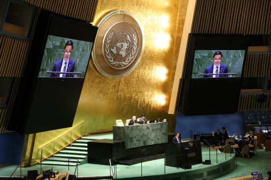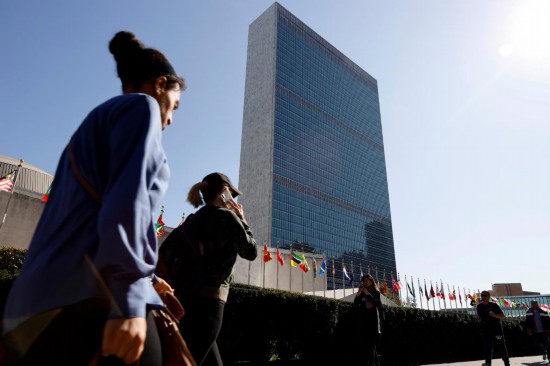 2019年10月14日,人们从位于纽约的联合国总部前走过。新华社记者 李木子 摄