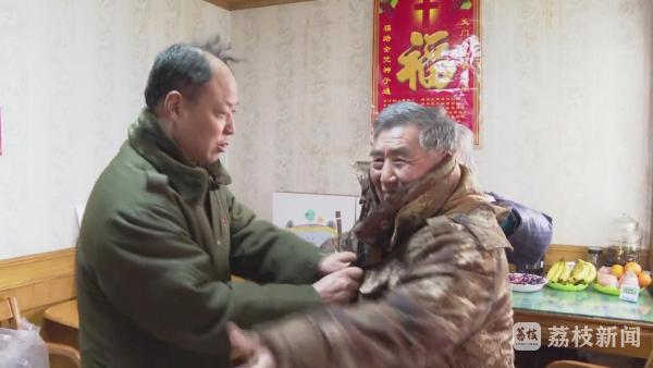 昨天下午,仇爱清来到荣获空军一等功的王胜利家中看望他的父母,仇爱清给王胜利父亲王普连换上新的大衣,因为熟知王爷爷的身体情况,他还熟练地拿出血压仪为王爷爷量血压, 谈起仇爱清,王普连满口的夸赞 。