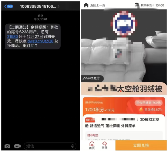 近期,中国消费者协会就曝光了不法商家利用积分到期催办兑换相应商品或服务涉嫌误导消费的行为。中国消费者协会发现这些所谓积分兑换商城中充斥了大量假冒伪劣产品。如“积分兑换商城”中用1700积分+188元就能兑换一条原价1888元的“加拿大鹅”羽绒被,而事实上加拿大鹅公司从来都没有羽绒被产品。
