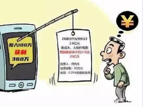 骗子利用大众对影视投资的不了解,在网上大肆宣扬影视投资的高额回报,吸引受害人主动联系,推荐当前热门电影的“电影版权份额”,签订虚假合同骗取受害人信任,收到钱款后便消失不见。