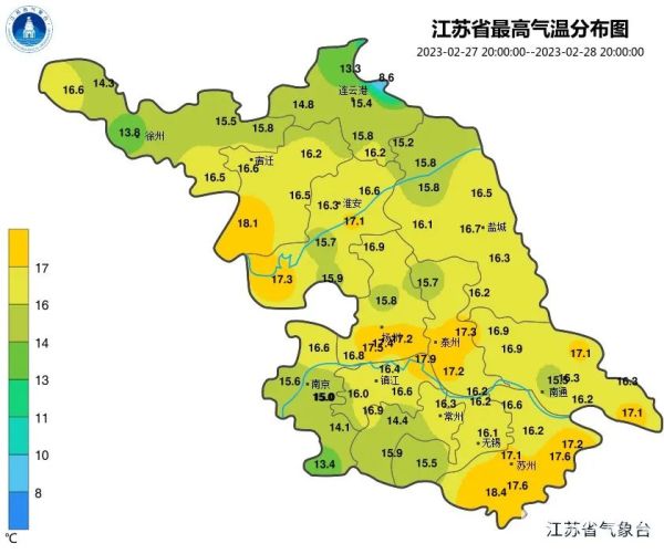 今天(2月28日)是二月的最后一天,气温依旧给力。今天全省最高气温18.4℃,但少了阳光的陪伴,体感没有前两天暖和,早晚气温依旧低迷。