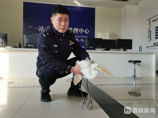 民警立即与野生动物救助中心取得联系,经专业人员辨认,确认了这只“白鸟”是国家二级重点保护动物——白鹭。民警对白鹭进行简单的救治,随后将白鹭移交到睢宁县野生动物救护中心进行专业救治。