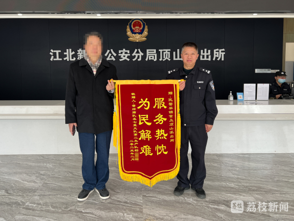 “真是太感谢你们了,没想到过了这么多年还能有相聚的一天”。市民吴先生在与故人重逢之后,今天(2月28日)专程赶至南京市公安局江北新区分局顶山派出所送来锦旗,感谢社区民警的热心帮助。