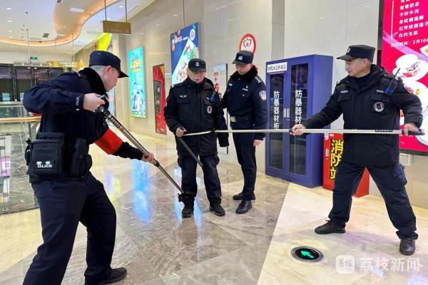 同时,曲江派出所还在商场大厅内设立了“时代应急作战点”,配备装备柜和抓捕叉、盾牌等应急作战装备,专门安排了值守人员,并对值守人员、商户开展警务技能培训,现场演示和讲解应急装备的使用规范和注意要点,确保一旦发生突发事件,能够自防自救,第一时间开展先期处置,切实织密商圈安全“防护网”。