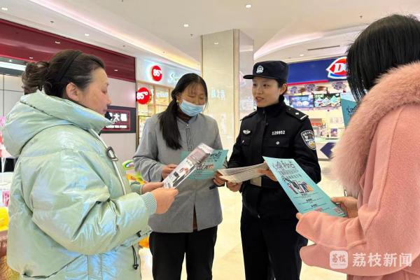 民警和队员们臂戴“时代巡逻队”袖章,对商圈内部重点部位和外围进行巡查,并同步开展反诈宣传,面对面向群众普及各类防骗反诈知识,提醒商铺业主和顾客群众捂紧钱袋子,全面提高商场内外的见警率、管事率。