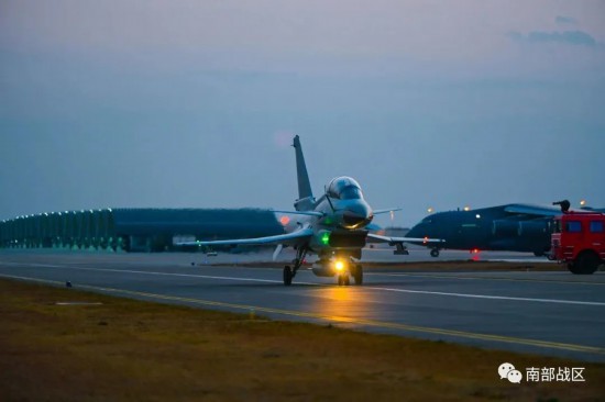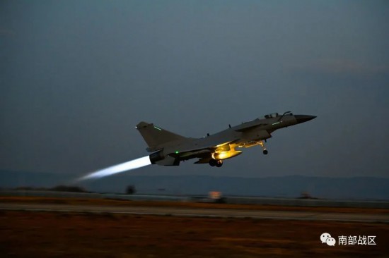 申时,随着指挥员一声令下,一架架战机呼啸而起,南部战区空军航空兵某旅跨昼夜飞行训练正式拉开帷幕。