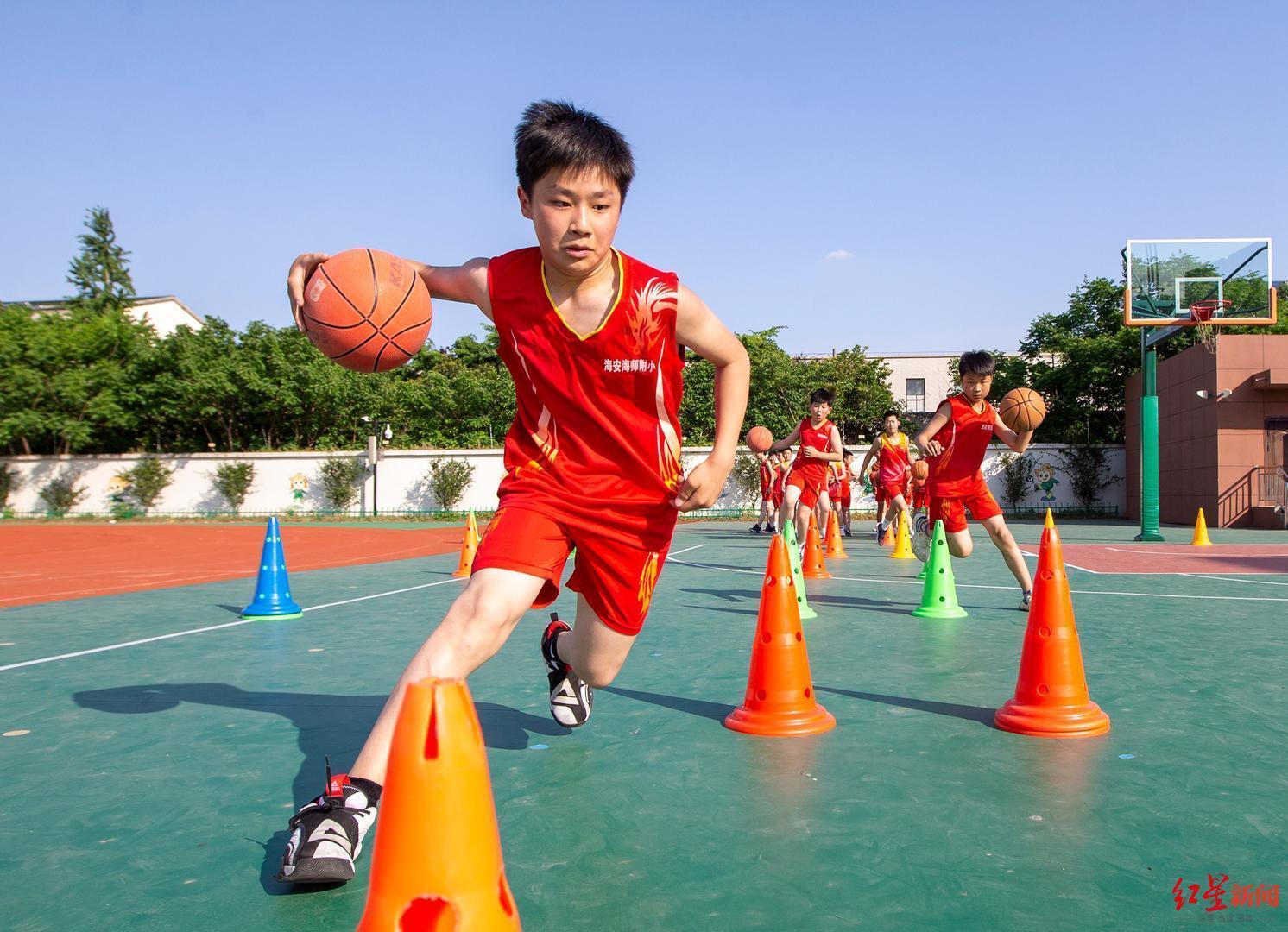 江苏省海安市,孩子们在课后延时服务时间练习篮球基本功 据ICphoto