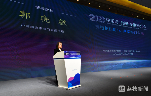 郭晓敏代表海门区委、区政府向出席活动的各位嘉宾表示热烈欢迎。在简要介绍海门经济社会发展情况后,她说,随着长三角一体化国家战略深入推进,海太长江隧道、北沿江高铁、南通新机场等重大战略工程全面起势,江港、海港、空港叠加赋能的海门正加速成为长三角北翼最具影响力的交通新枢纽、城市新亮点、开放新高地,投资海门,就是投资国家战略;选择海门,就是选择美好未来。作为南通唯一的国家县城新型城镇化建设示范区,我们主动对标上海“五大新城”“卓越全球城市”建设,瞄准“100平方公里建成区、90万城区人口”目标,按照全域“一城两港六组团”的空间格局,独具匠心做好城市规划建设,期望与在座各位一道,以匠心经营城市,以作品致敬城市,与海门共生长、共繁荣。我们充分发挥江海资源禀赋优势,全力打造尽显大江风光、独具海上风情、展现国际风范的魅力生活空间,海门是大家成就事业、拥抱幸福、乐享生活的最佳选择。