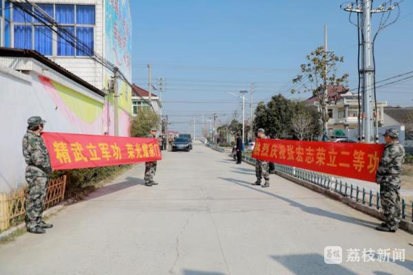 一人立功,全家光荣,全市光荣。2月28日,泰兴市及南京73602部队的军地有关同志组成送喜报队伍,将二等功喜报、慰问金送到珊瑚镇现役军人张宏志家中。