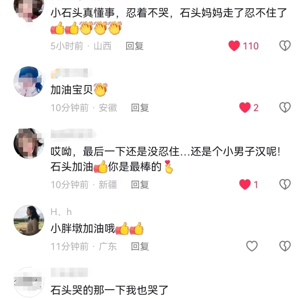 也许正是这样一个良好的氛围,才让这个只有6岁多的孩子愿意离开父母独自在离家那么远的地方减肥。很多网友都被小石头的坚强所感动,这段视频也让不少人破防。