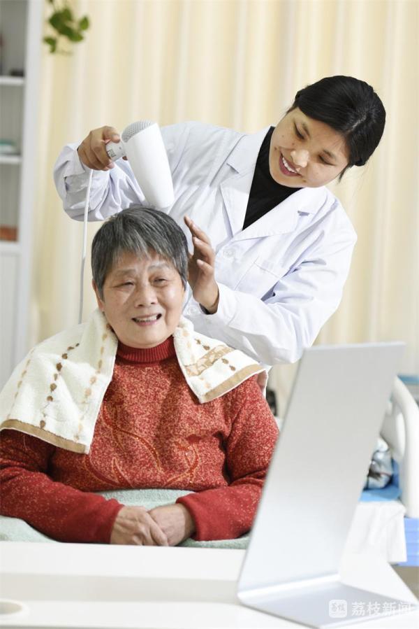 在盐城市亭湖区五星街道万户新村老年助浴服务中心,工作人员正在为前来洗浴的老人测量血压。在南京,大多日间照料中心也开设助浴服务,让洗澡不便的老人能洗上一个舒服的热水澡。