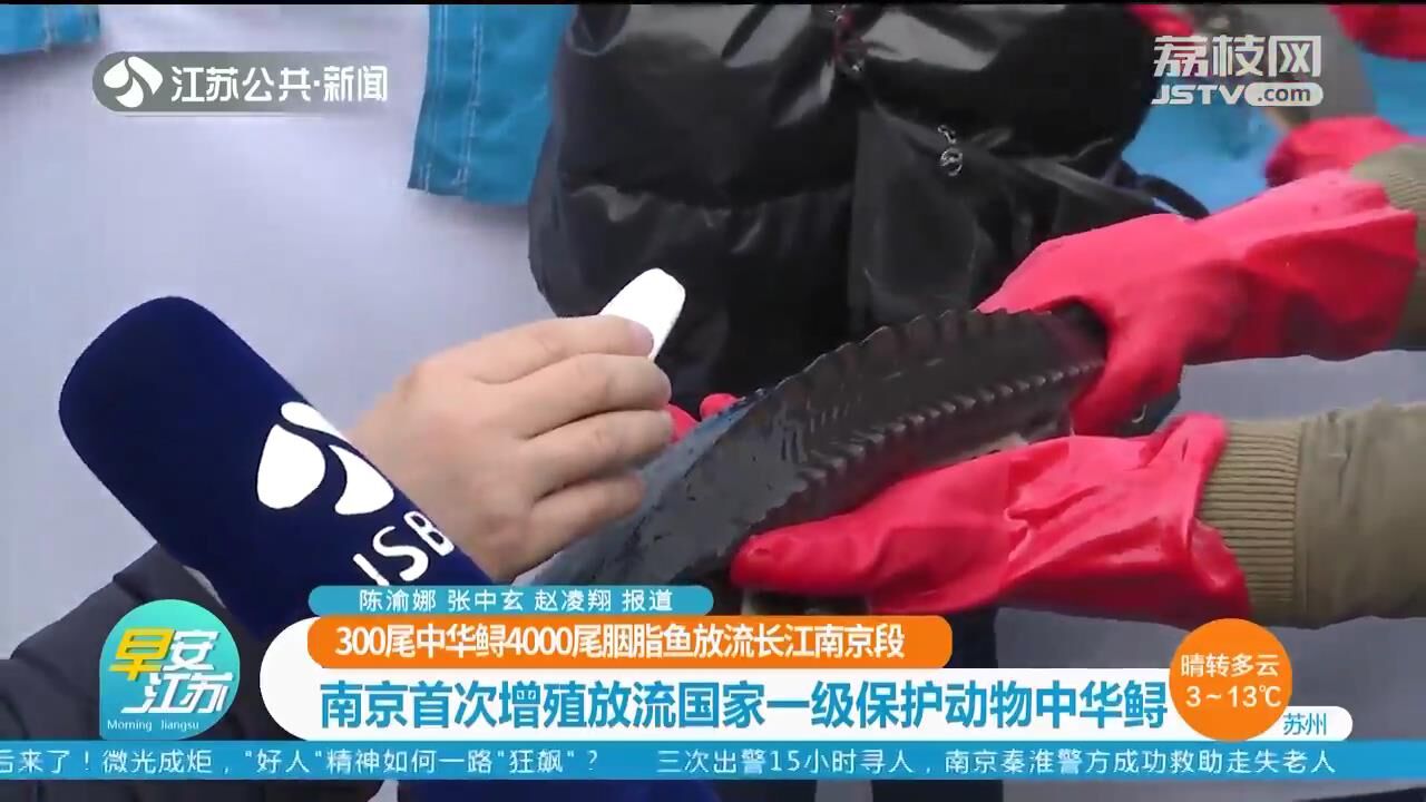 3月1日是《长江保护法》实施两周年。1日上午,300尾国家一级保护动物中华鲟和4000尾国家二级保护动物胭脂鱼被放流到长江南京段中。这也是南京首次增殖放流国家一级保护动物中华鲟。
