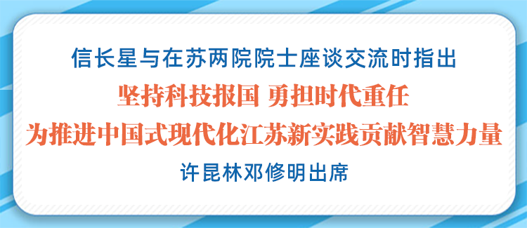 信长星指出,全面建设社会主义现代化国家,教育是基础,科技是关键,人才是根本。深入学习习近平总书记关于科技创新的重要论述,重温总书记对江苏工作特别是科技创新的重要指示,联系当前世界之变、时代之变、历史之变,更加深刻体悟到总书记的嘱托之重、江苏的责任之重。奋进新征程,我们将始终坚持科技是第一生产力、人才是第一资源、创新是第一动力,抓住大趋势、下好“先手棋”,在基础研究上有所作为,在关键核心技术攻关上有所作为,在颠覆式创新上有所作为,努力成为我国原始创新的重要策源地、突破地,不断开辟发展新领域新赛道、塑造发展新动能新优势。希望在苏两院院士大力弘扬科学家精神,瞄准世界科技前沿,引领科技发展方向,把国家所需和江苏所长紧密结合,帮助江苏谋划创新布局,助力更多“国之重器”布局江苏,实现更多原创性成果突破和转化,引进和培养更多高水平创新人才,共同推进中国式现代化江苏新实践。各级党委政府要切实当好科学家们的“后勤部长”,给予最大支持、提供最好服务,为在苏两院院士潜心科研、放心发展、舒心生活营造良好环境。