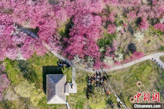 航拍印象梅庵,大片梅花盛开,灿若云霞。泱波摄