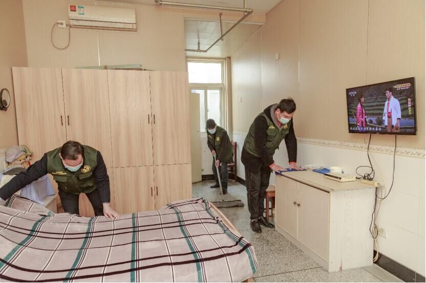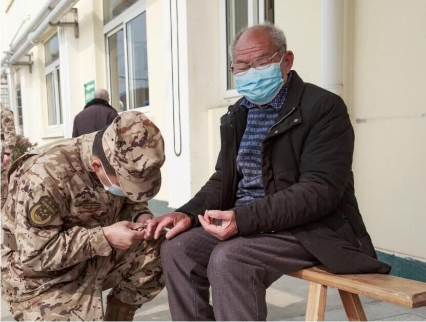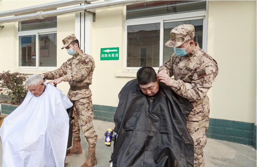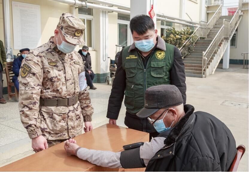 用爱心传递温暖,以行动书写忠诚。武警盐城市支队官兵们到达郭猛镇敬老院,就给老人们送上大米、白面等慰问品。随后,“戎耀郭猛”退役军人志愿者和现役军人为老人们理发、剪指甲、剃胡须;帮助老人们收拾房间卫生,他们拿起扫把、簸箕、抹布等工具把敬老院上上下下打扫得干干净净;武警卫生员更是贴心地为老人测量血压,热心关注老人身体健康状况,并嘱托老人天气变化时要注意身体保暖,饮食要注意卫生,行动要注意安全等。活动现场,他们分工有序、配合默契,温情的陪着老人唠家常,详细询问他们的身体状况和生活状况,用朴实而真诚的行动表达着对老年人的关爱。现役军人和退役军人志愿者们的热心服务让敬老院老人们的脸上都洋溢着喜悦的笑容,整个敬老院内都欢声笑语一片。