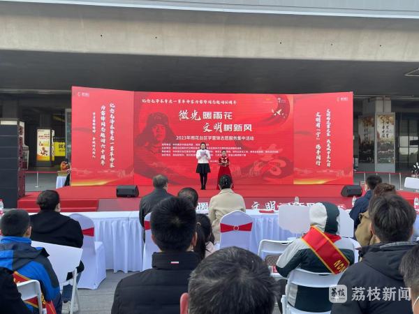 本次学雷锋主题实践活动由南京市雨花台区新时代文明实践中心、区新时代文明实践志愿服务总队主办,通过原创情景剧、“时空对话”、文明倡议、故事分享、表彰先进、理论微宣讲、项目大赛启动……旨在树立文明典型,讲好雨花故事,引领市民争做新时代雷锋精神的传播者、弘扬者和践行者。