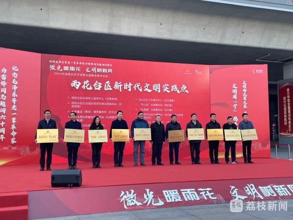 近年来,雨花台区以志愿服务为抓手,统筹整合现有公共服务资源,打造多元服务阵地。2022年以来,更是进一步打造建设特色鲜明、亮点突出的文明实践点,搭建覆盖广泛、方便群众、面积适当的文明实践四级阵地网络,真正做到“群众在哪里,文明实践就延伸到哪里”,活动现场也对综合评选出的全区第一批20个新时代文明实践点进行了授牌。
