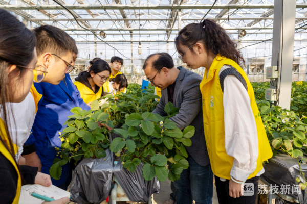 眼下正值草莓成熟管理的关键时期,昨天(3月2日)下午,江苏农林职业技术学院农学园艺学院党总支副书记王全智老师带领新禾助农服务团师生们先后来到句容市白兔镇柏生草莓种植合作社、纪荣喜家庭农场等地,开展了“助农春耕,‘益’心为农”实践活动。服务团通过科技助农促进农民增收,既践行了“我为群众办实事”的理念,又将大学生的劳动教育搬入了田间地头。