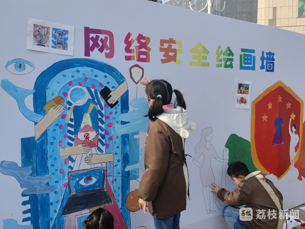 为了提高活动的参与度和吸引力,活动现场特设了有奖答题、情景互动“你比我猜”小游戏、墙绘、诈骗案缴获实物展示教育等互动体验区,吸引青少年群体关注。在墙绘区,记者看到,镇江团市委组织的14名孩子发挥志愿服务精神,正在手绘心中的网络世界,中山路小学五年级学生丰奕宇告诉记者,当天他们画的整幅画以蓝色为底,有眼睛、放大镜、电脑等元素,“想提醒大家,上网时要擦亮眼睛,谨慎识别不实信息。”