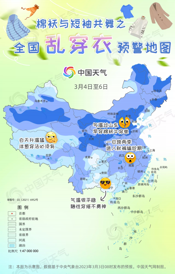 早晚温差进一步拉大,乱穿衣的3月名副其实,秋裤表示自身处境十分尴尬,可厚外套加薄内搭,根据气温及时增减衣物,谨防着凉。