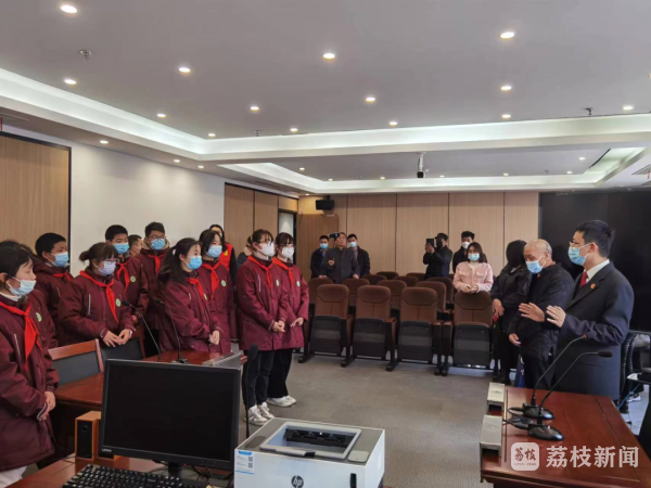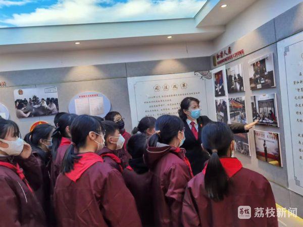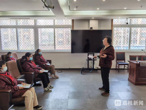 在法院工作人员的带领下,家长和同学们参观了红花法庭24小时自助立案服务区、家事调解室、谈话室、红花展厅、党建工作室等。朱教莉庭长对少年家事审判工作情况及家风家教建设等进行了介绍。学生与家长们看得兴致盎然,听得津津有味。
