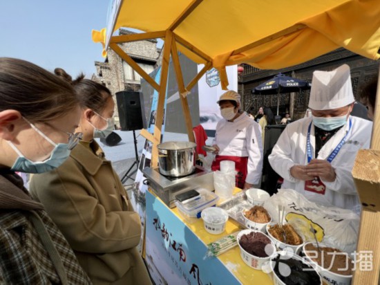 在现场特别设置的姑苏非遗展示区,桃花坞木版年画、李良济膏方、象牙雕刻、近水楼糕团、朱新年汤团、“虎丘”三花茶等,也吸引了众多市民游客驻足。“我们结合兔年和桃花坞木版年画特色,推出了一批兼具传统与潮流的文创作品,也希望以此为契机,向世人推介姑苏、展示江南文化。”乔麦年画工作室负责人陈伟说。朱新年点心店负责人朱新年也首次将苏式汤团带到南京,让南京市民游客品尝姑苏味道。南京市民朱女士特意购买了20只汤团带回家,“此次活动不仅让我了解了姑苏古城,也让我想和家人朋友一起游在姑苏、乐在古城。”朱女士说。
