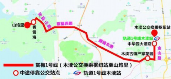 赏梅1号线:(轨道1号线木渎站至光福香雪海)