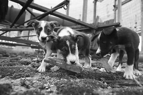 一群流浪的小狗在荒废的切尔诺贝利核电站里玩耍。图片来源:Sean Gallup/Getty