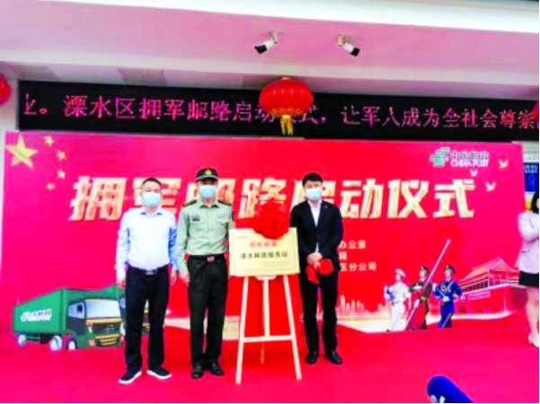 2022年5月,溧水区退役军人事务局与中国邮政溧水分公司举行拥军邮路共建启动仪式,各双拥工作站和邮政站点常态化合作,做好上门走访、困难帮扶和节日慰问等暖心服务,进一步丰富了溧水区社会化拥军内容。依托拥军邮路,溧水区退役军人事务局在优待证办理前期邮寄发放宣传折页及申办手册,提供寄递上门代收递信息申报表服务。优待证制办完成后,可以通过邮政快递将优待证免费寄送上门,让退役军人体验到足不出户就能完成优待证的申办。