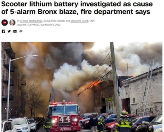 纽约消防局局长劳拉·卡瓦纳在事故现场告诉记者,起火的原因与一块电动代步车的锂电池有关。卡瓦纳说:“这类锂离子引发的火灾是爆炸性的。一旦发生,火势就会非常大,很难扑灭,所以特别危险。”