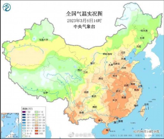 今天进入惊蛰节气,中东部的气温也在大踏步地回升。监测显示,截至今天14时,郑州、武汉、合肥、长沙、南昌、杭州、南京、济南、上海、石家庄、西安、北京、天津、太原共14个省会直辖市气温均在20℃以上,并刷新了今年来新高。其中,郑州、武汉、长沙为今年首次冲上25℃,同时,郑州还是今年北方首个上25℃的省会级城市。此外,今日北京气温打破3月上旬最高纪录(原纪录为2008年3月10日22.3℃)。