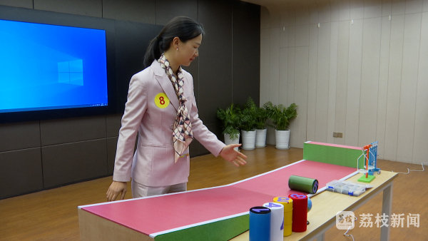苏州工业园区第二实验小学科学老师张馨霞带来自选实验《滚动表演赛》,用不同的滚筒展现了各种奇特的滚动现象,有滚得快的,滚得慢的,滚得顿挫的,还有会自动回滚神奇滚筒。